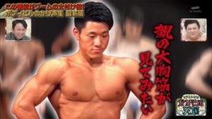 これは2019年11月1日放送のテレビ朝日系バラエティー番組『マツコ&有吉 かりそめ天国SP』で、毎年恒例となりつつある「ボディビル大会の掛け声」を特集した際に出た名言(珍言)です。