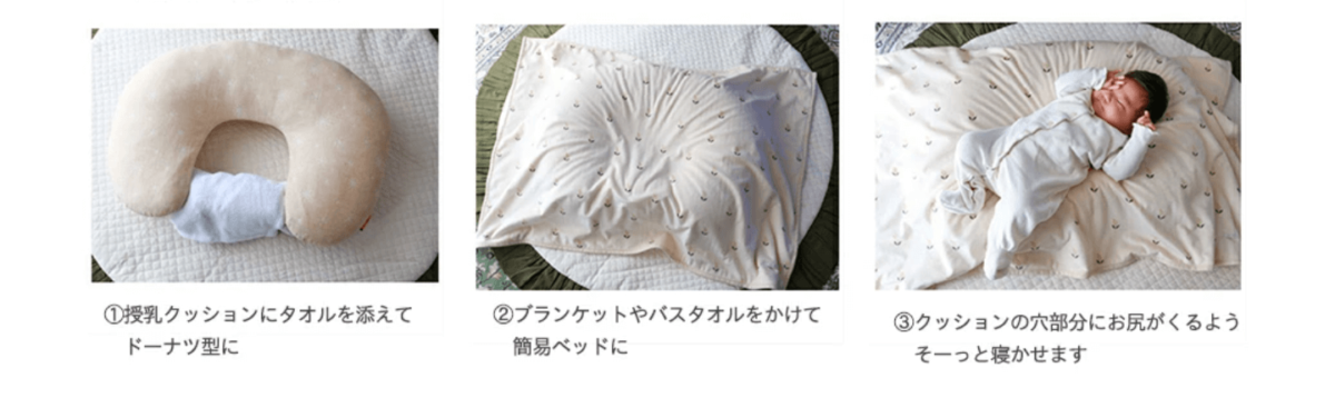 - 「赤ちゃんのおすわりサポート」:赤ちゃんの吐き戻し防止やお座りサポートとして使用できます。