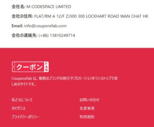念のためクーポンfabの会社情報を調べてみたところ、以下のような表記がありました。