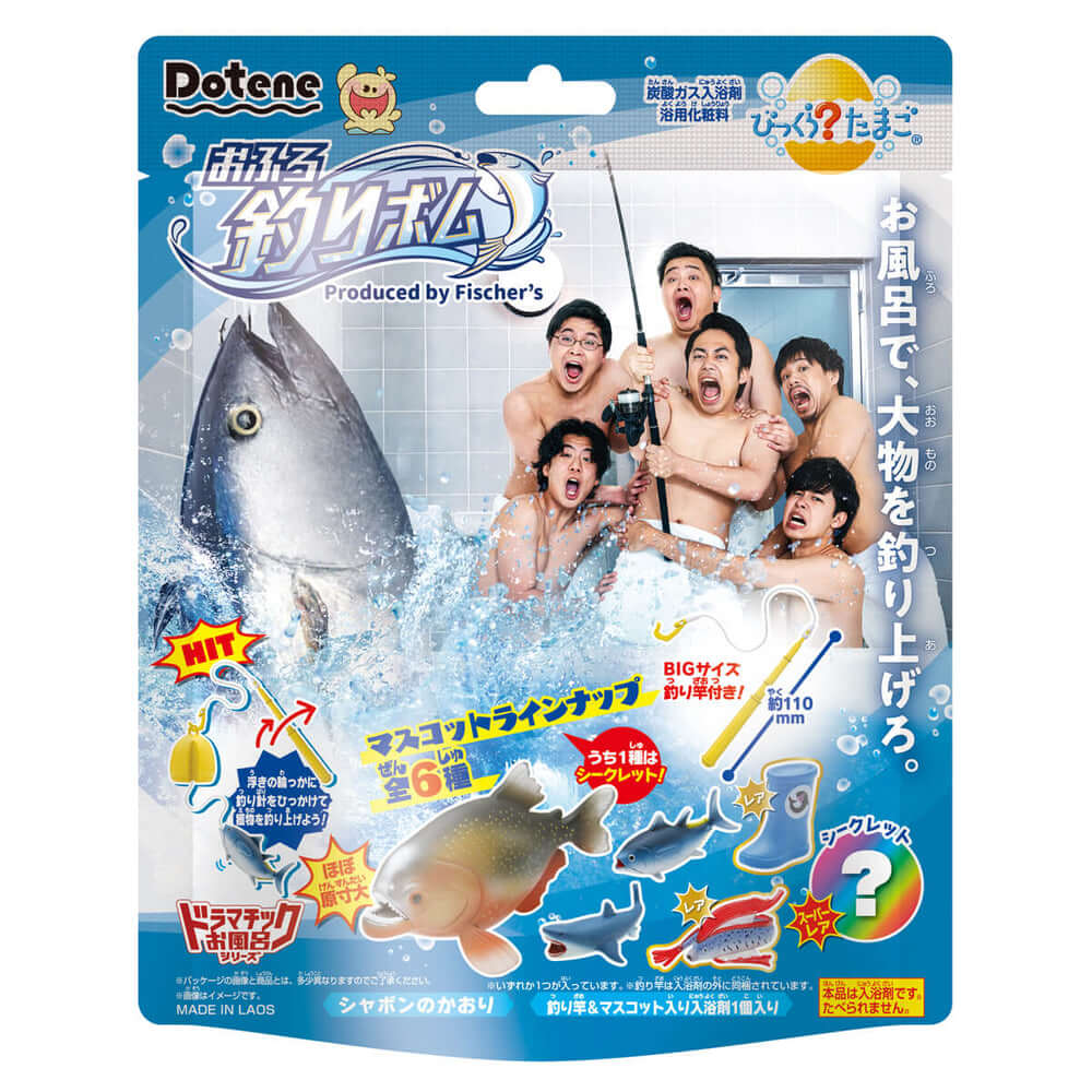 マスコット入り入浴剤で、全6種類のどのマスコットが当たるかというドキドキ感、釣りを楽しむゲーム感、釣りあげた達成感など遊び要素が詰まった入浴剤となっています。