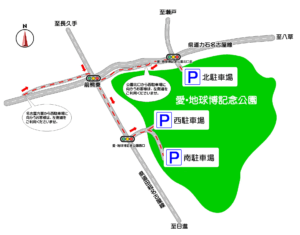 - 西駐車場:「愛・地球博記念公園西口」信号機からスグ