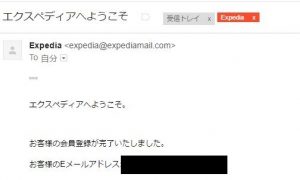 ④エクスペディアよりメールが届く。これで登録完了です。