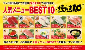 ぜひくら寿司の人気トップ10を制覇してみてくださいね(^▽^)/#木村拓哉 さんをはじめ、出演者の皆様、ありがとうございました!#くら寿司 #帰れま10 #テレビ朝日 #BG pic.twitter.com/WR3Beqgab4— 無添くら寿司【公式】 (@mutenkurasushi) January 16, 2018