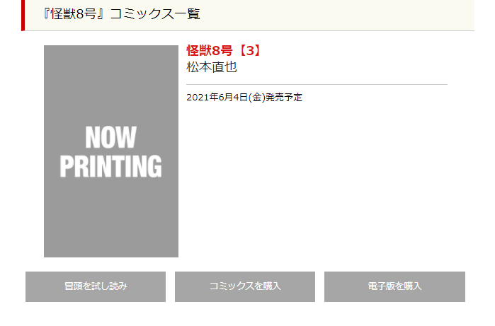 しかし、3月現在、まだ怪獣8号3巻の予約情報はありませんでした。