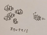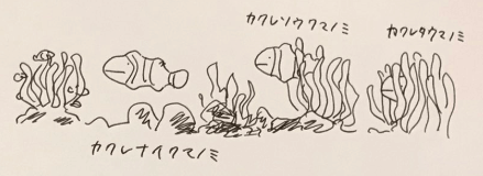 「カクレクマノミ」から派生されていったクマノミたち。おそらく最初は「カクレ」を使って考えていたのが、だんだん脱線して「サブレ」「カクニ」になっていったのが面白いです。
