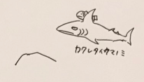サメのヒレの後ろにいるので全く隠れられていないのが良いですね。サメの「なんだコイツ」という顔も面白いです。