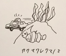海の中にパトカーが走っているのが面白いです。それとも地上にクマノミが浮いているのでしょうか…?