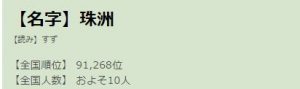もう1つの「すず」の変換で「珠洲」という漢字が出てくるのですが、こちらも一応苗字として使われていることが分かりました。しかし全国でも10人ほどしかいない超レアな苗字であるため、こちらの可能性は低いと考えています。