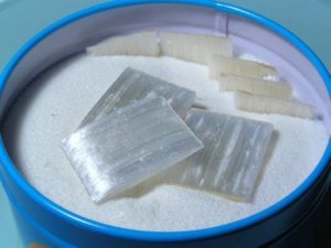 霜ばしらの缶の中には破損防止用にらくがん粉が、目いっぱい入っています。