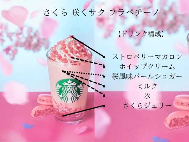 見た目、食感、味わいで桜の季節を楽しめるフラペチーノです。