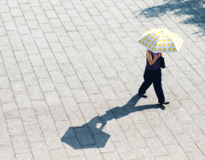 UVカット率が低い日傘は、紫外線だけでな赤外線などの可視光線を遮る性能(遮光率)も弱いため、「日傘の陰の中にいるのに暑さを感じる」なんてことが起こるわけです。